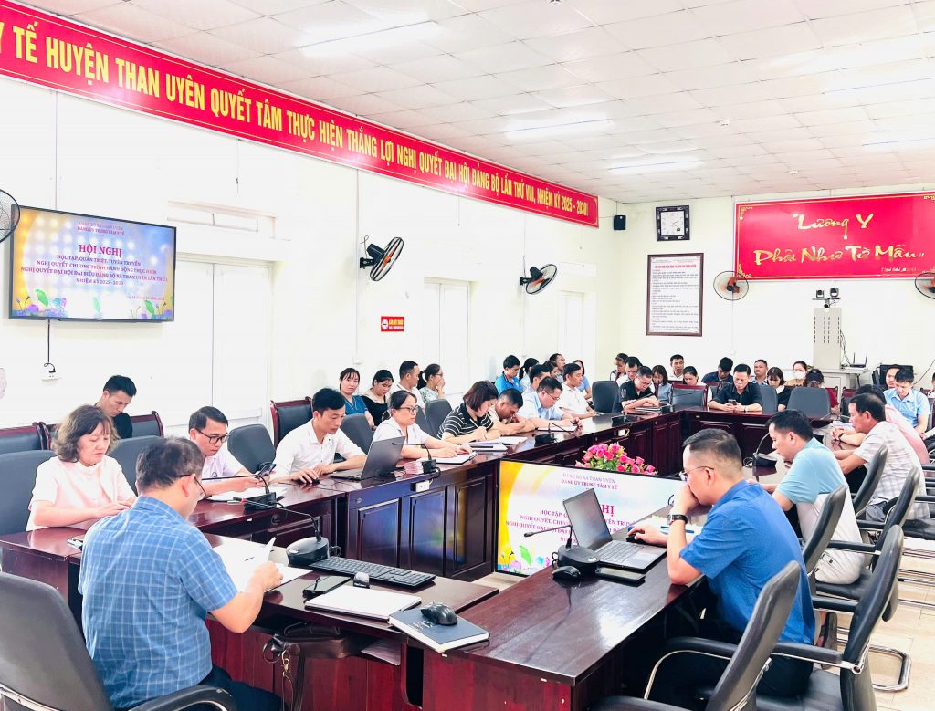 Chiều ngày 14/10/2025, Trung tâm Y tế Than Uyên tổ chức Hội nghị học tập, quán triệt, tuyên truyền Nghị quyết, Chương trình hành động thực hiện Nghị quyết Đại hội đại biểu Đảng bộ xã Than Uyên lần thứ I, nhiệm kỳ 2025 – 2030, bằng hình thức trực tiếp kết hợp với trực tuyến với các khoa chuyên môn.