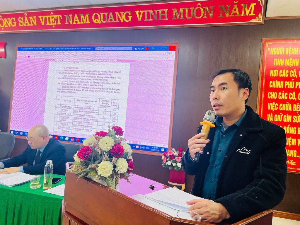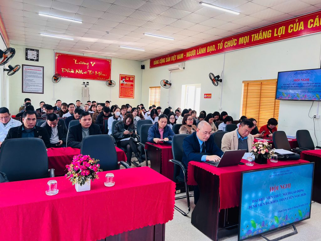 Chủ trì Hội nghị có TTUT Bs CKII. Vũ Văn Quang – Bí thư Đảng bộ, Giám đốc Bệnh viện, đồng chí Đinh Xuân Thủy -PGĐ, Chủ tịch CĐCS; 79 đại biểu là viên chức, người lao động đại diện cho các khoa, phòng trong đơn vị tham dự.