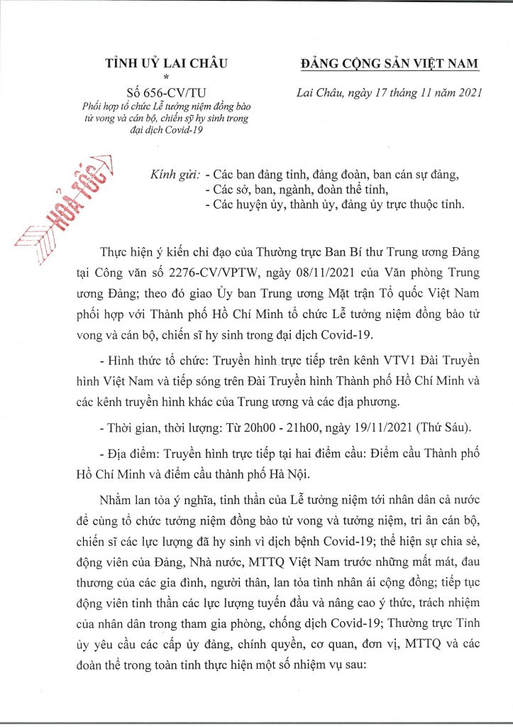 Lễ tưởng niệm đồng bào tử vong, cán bộ chiến sĩ hy sinh vì COVID-19 19 Tháng Mười Một, 2021 admin Tin hoạt động 0