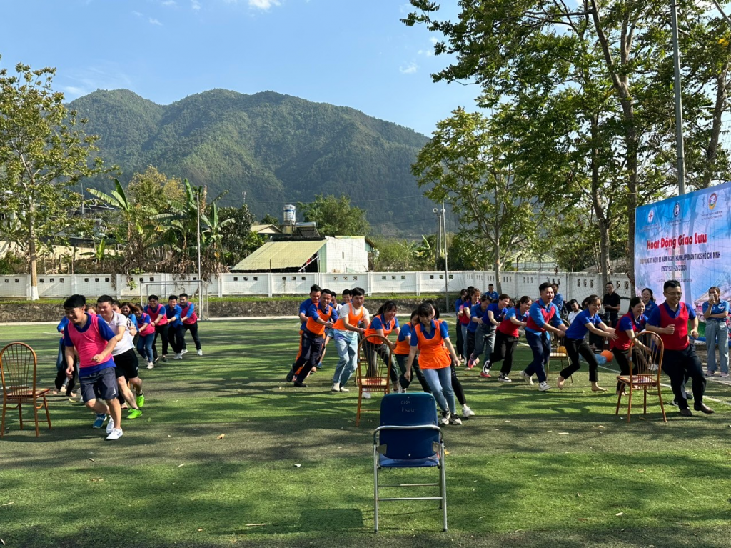 Tại buổi giao lưu đã tổ chức nhiều hoạt động Team building: Tam sao thất bản, chạy tiếp bóng, đua xe thần tốc, chuyển ống hút… và giao lưu bóng đá nam.