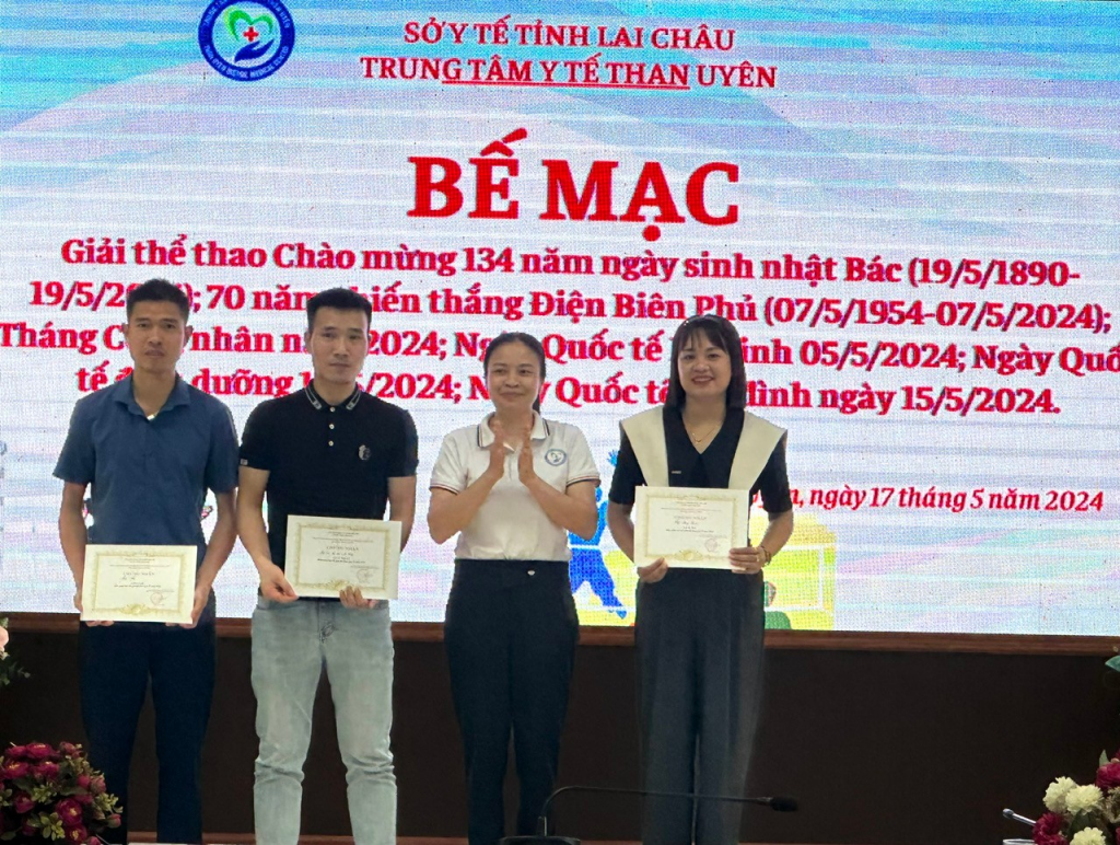 Chiều 17/5/2024, Công đoàn cơ sở Trung tâm Y tế tổ chức bế mạc giải thể thao chào mừng kỷ niệm 134 năm ngày sinh nhật Bác; 70 năm chiến thắng Điện Biên Phủ; tháng công nhân năm 2024; ngày Quốc tế hộ sinh; ngày Quốc tế điều dưỡng; ngày Quốc tế gia đình. Dự Bế mạc, có đồng chí Vũ Văn Quang – Giám đốc Trung tâm Y tế; các đồng chí trong Ban giám đốc; BCH Công đoàn; Đoàn thanh niên; đại diện Lãnh đạo khoa, phòng, trạm y tế, Tổ trưởng các Tổ công đoàn cùng các vận động viên tham dự.