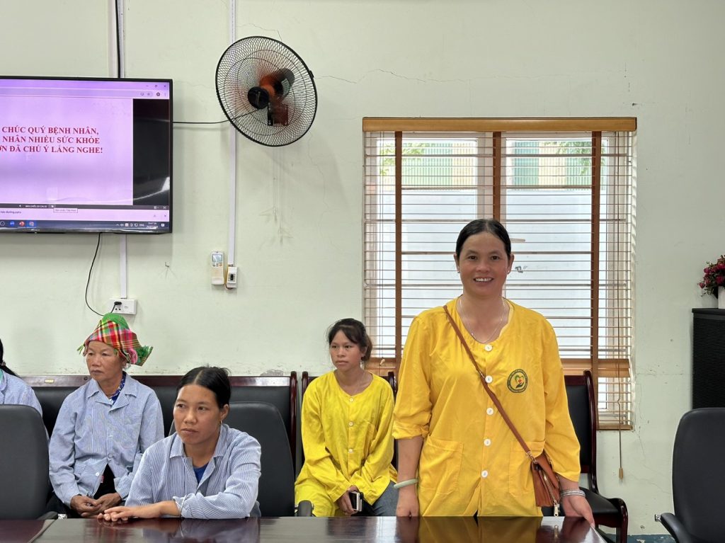 Tại buổi họp, đồng chí Bùi Thị Vân – Điều dưỡng Trưởng khoa Liên chuyên khoa đã phổ biến nội quy, quy định, quyền lợi và nghĩa vụ tới người bệnh, người nhà người bệnh tại Bệnh viện. Đồng thời đã tư vấn sức khỏe và chế độ ăn cho người bệnh mãn tính như đái tháo đường, cao huyết áp.