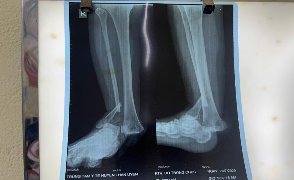 Vào lúc 09 giờ 57 phút ngày 28/7/2025, Trung tâm Y tế Than Uyên tiếp nhận bệnh nhân nữ, 41 tuổi, trú tại xã Chiềng Bằng, tỉnh Sơn La, vào viện trong tình trạng cổ chân phải bị chấn thương nặng, biến dạng, chảy máu nhiều do ngã xe máy. Sau khi thăm khám, hội chẩn, bệnh nhân được chẩn đoán gãy hở 1/3 dưới xương mác, gãy mắt cá trong, bật khớp cổ chân phải, cần được phẫu thuật cấp cứu.