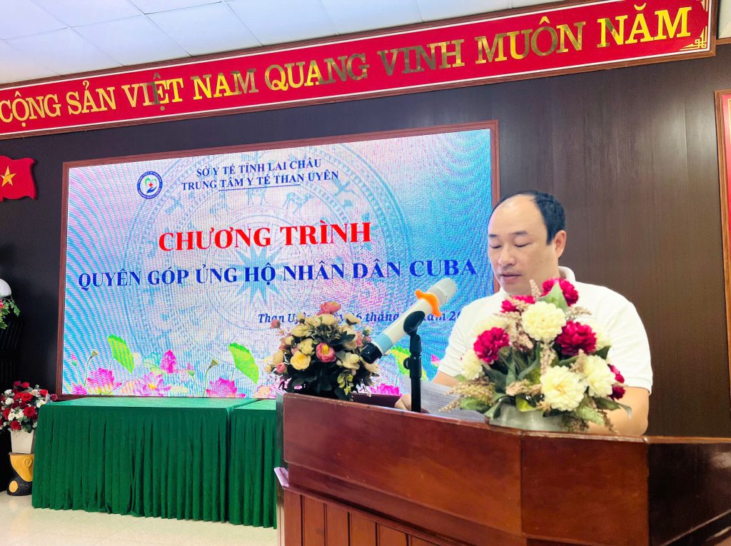 Ngày 06/10/2025 tập thể cán bộ, viên chức, người lao động. Trung tâm Y tế Than Uyên tích cực tham gia ủng hộ với tinh thần tự nguyện, trách nhiệm và nghĩa tình. Hoạt động này không chỉ thể hiện sự sẻ chia với Nhân dân Cuba vượt qua khó khăn mà còn góp phần vun đắp, lan tỏa tình đoàn kết, hữu nghị đặc biệt, thủy chung giữa hai dân tộc Việt Nam – Cuba.