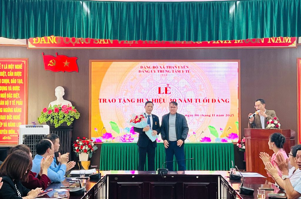 Chiều 06/11/2025, Đảng bộ Trung tâm Y tế Than Uyên long trọng tổ chức Lễ trao tặng Huy hiệu 30 năm tuổi Đảng cho đồng chí Phạm Xuân Tân.