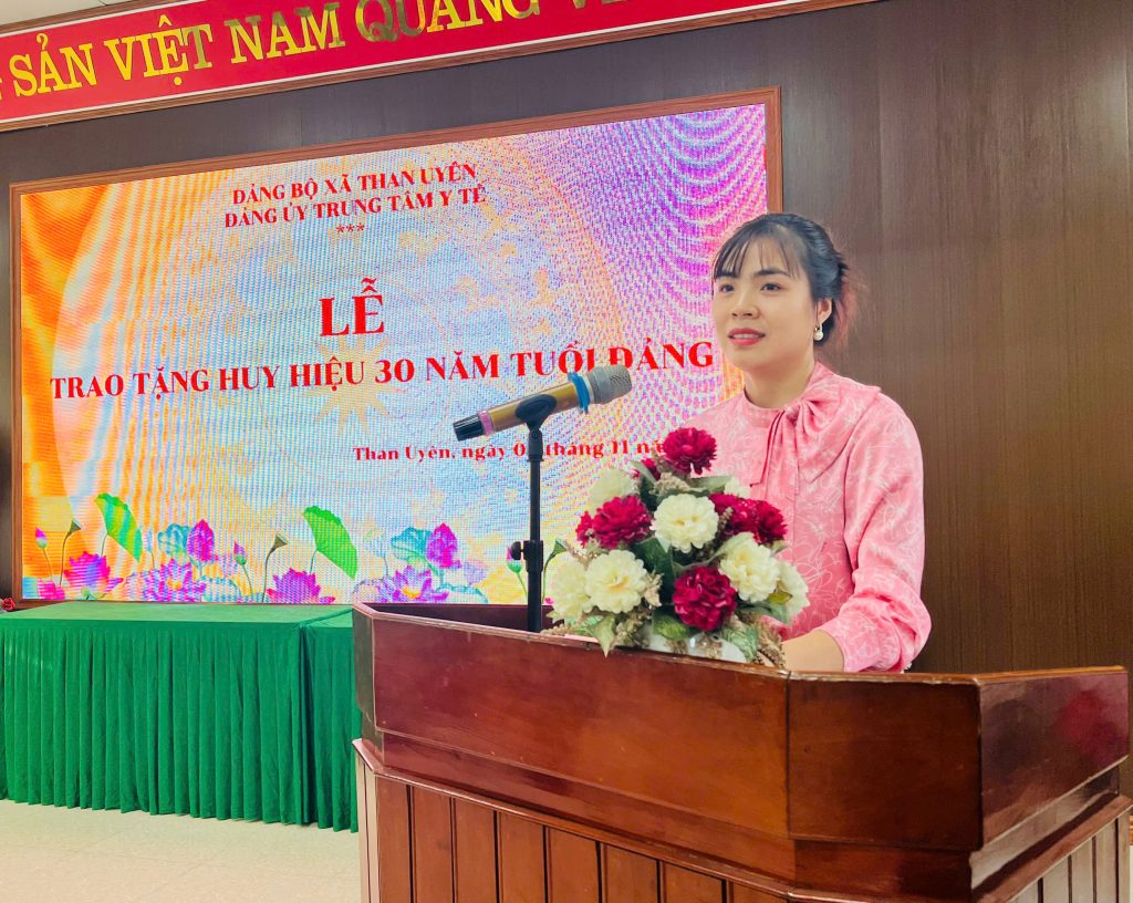 Dự buổi lễ có đồng chí Bùi Thị Bích Dung – Ủy viên Ban Thường vụ Đảng ủy, Phó Chủ tịch UBND xã Than Uyên; TTUT. BS Vũ Văn Quang – Bí thư Đảng bộ, Giám đốc Trung tâm Y tế cùng toàn thể đảng viên trong Đảng bộ.