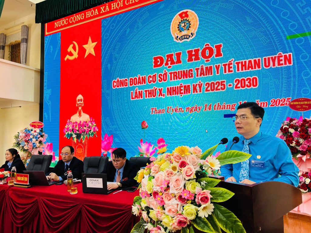 Chiều ngày 14/11, Trung tâm Y tế Than Uyên tổ chức Đại hội Công đoàn cơ sở lần thứ X, nhiệm kỳ 2025-2030. Dự và chỉ đạo Đại hội có đồng chí Đàm Xuân Diễn – Ủy viên Ban Thường vụ, Phó Trưởng ban Công tác Công đoàn (Liên đoàn Lao động tỉnh).