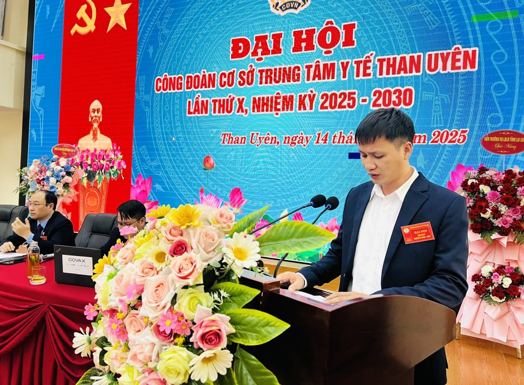 Phát biểu khai mạc, đồng chí Đinh Xuân Thủy – Chủ tịch Công đoàn cơ sở, Phó Giám đốc TTYT nhấn mạnh ý nghĩa của Đại hội trong việc tiếp tục nâng cao hiệu quả hoạt động Công đoàn và chăm lo đời sống đoàn viên.