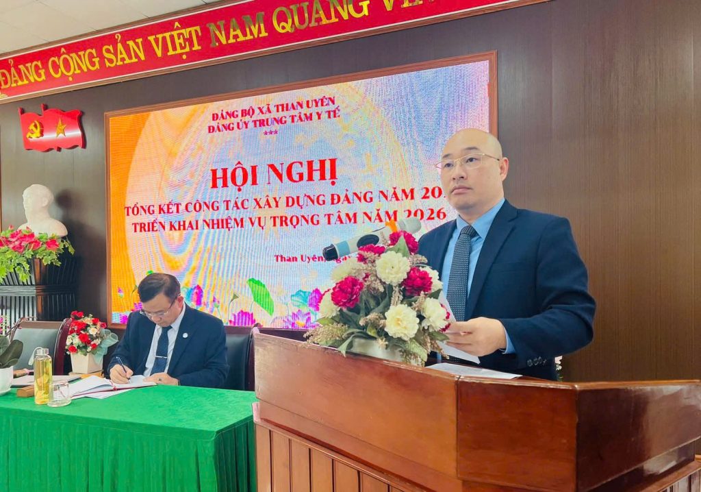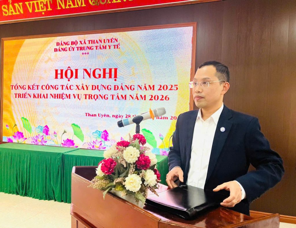 Phát biểu chỉ đạo, Đồng chí Tạ Hồng Long – Phó Giám đốc Sở Y tế: Ghi nhận kết quả và biểu dương sự chủ động trong sắp xếp bộ máy. Đồng chí yêu cầu năm 2026 cần tập trung đào tạo chuyên môn sâu, làm chủ kỹ thuật mới và đảm bảo quá trình bàn giao trạm y tế diễn ra nhịp nhàng, không làm gián đoạn việc chăm sóc sức khỏe nhân dân.