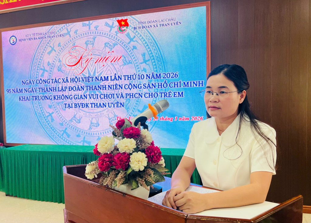Chiều ngày 25/3/2026, Bệnh viện Đa khoa Than Uyên tổ chức Hoạt động kỷ niệm Ngày Công tác xã hội Việt Nam lần thứ 10 (25/3/2016 – 25/3/2026), 95 năm Ngày thành lập Đoàn Thanh niên Cộng sản Hồ Chí Minh (26/3/1931 – 26/3/2026) và khai trương không gian vui chơi, phục hồi chức năng (PHCN) cho bệnh nhi.