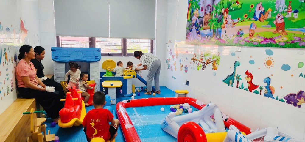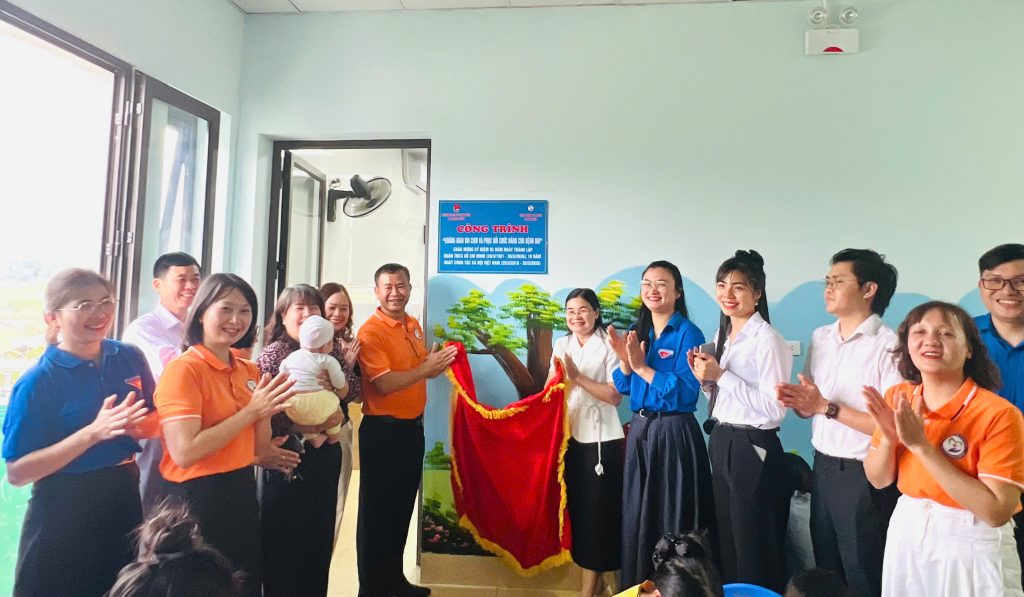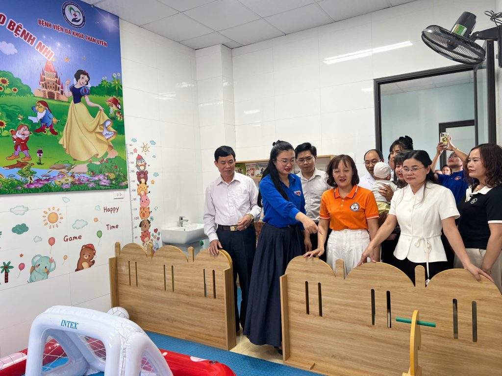 Phát biểu tại chương trình, Đồng chí Lê Thị Hợp – Phó Bí thư Thường trực Đảng ủy xã; đồng chí Vũ Văn Quang, Bí thư Đảng uỷ, Giám đốc Bệnh viện đánh giá cao sự phối hợp chặt chẽ giữa Bệnh viện và các tổ chức đoàn thể xã, đồng thời ghi nhận ý nghĩa thiết thực của công trình “Không gian vui chơi, PHCN” cho bệnh nhi đối với cộng đồng.